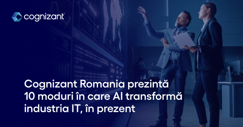 Pe măsură ce inteligența artificială continuă să redefinească peisajul digital, Cognizant România, una dintre cele mai mari companii IT din țară, publică 10 descoperiri și idei despre modul în care AI transformă dezvoltarea de software. Cognizant se află în prima linie a inovației AI la nivel global, sprijinindu-și clienții să valorifice puterea inteligenței artificiale pentru a-și transforma afacerile. În România, Cognizant joacă un rol strategic în avansarea capabilităților AI, printr-o bază de talente bine pregătite și expertiză profundă în industrie și angajament pentru dezvoltarea responsabilă a inteligenței artificiale.