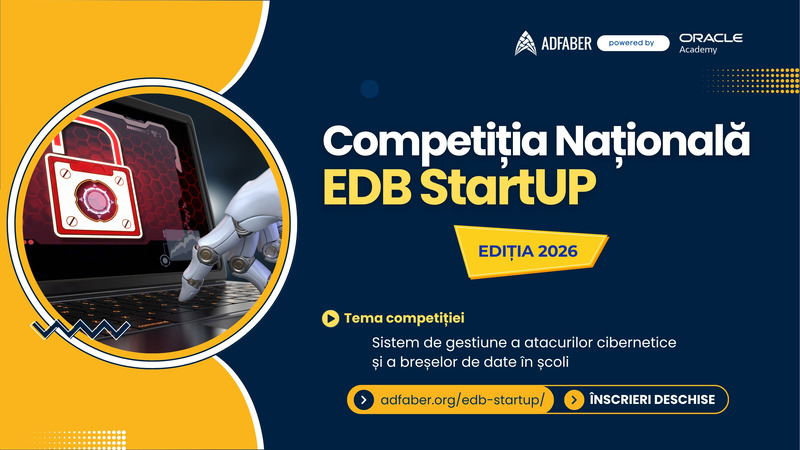Competiția EDB Start-up 2026 este o invitație către toți profesorii și elevii de liceu din România să facă parte dintr-un proiect educațional de impact, gratuit, recunoscut la nivel național și susținut de Oracle Academy. Elevii învață gratuit, pas cu pas, ce înseamnă să creezi, să structurezi și să valorifici datele într-un mod relevant.
