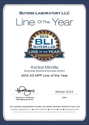 Konica Minolta câștigă premiul BLI A3 MFP Line of the Year