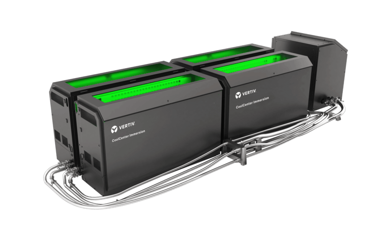 Răcirea prin imersiune constă în scufundarea completă a serverelor într-un fluid dielectric, care permite o disipare uniformă și eficientă a căldurii generate de toate componentele, în special acolo unde densitățile de putere și sarcinile termice depășesc limitele metodelor tradiționale de răcire cu aer. Vertiv™ CoolCenter Immersion oferă o arhitectură completă de răcire cu lichid, asigurând evacuarea fiabilă a căldurii pentru sisteme de calcul cu densitate ridicată, cuprinse între 25 și 240 kW per unitate.