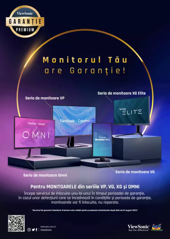 Producătorul a lansat serviciul de garanție premium pentru monitoarele din seriile VP, VG, XG și Omni (Gaming) achiziționate începând cu 1 august 2023. ViewSonic garantează că produsele brandului sunt impecabile din punct de vedere al materialelor și al manoperei și anunță că în cazul în care apare o defecțiune pentru seriile de monitoare selectate, se va efectua înlocuirea directă a produsului în locul reparației pe întreaga perioadă de garanție.